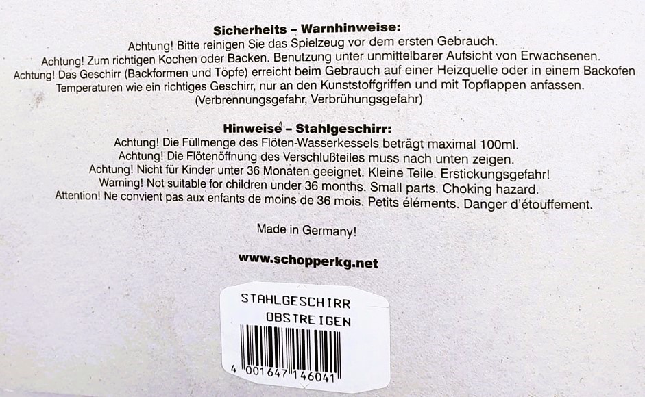 Produktinformationen "Kochgeschirr Obst Made in Germany"