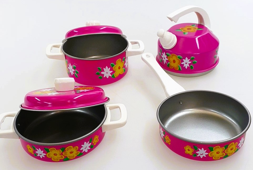 Produktinformationen "Kochgeschirr Pink mit Blumen Made in Germany"