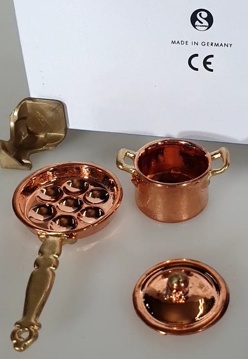 Pfanne und Kochtopf mit Deckel aus feinstem Kupfer.