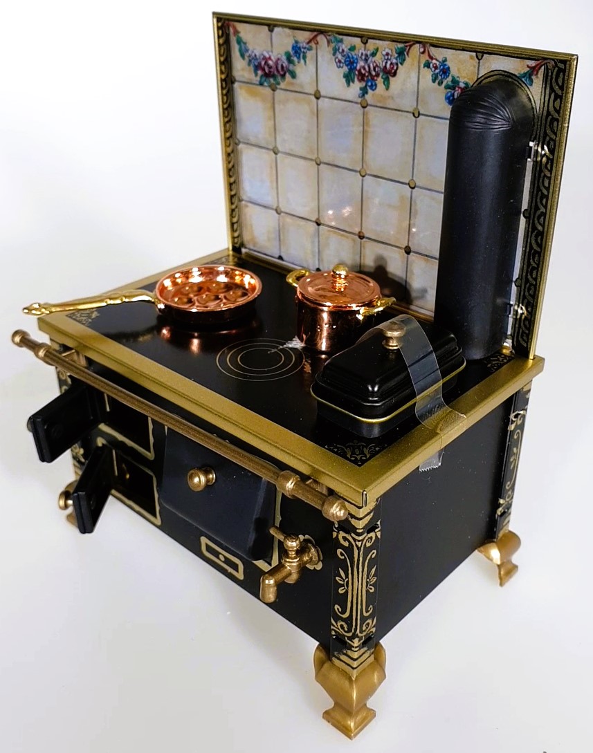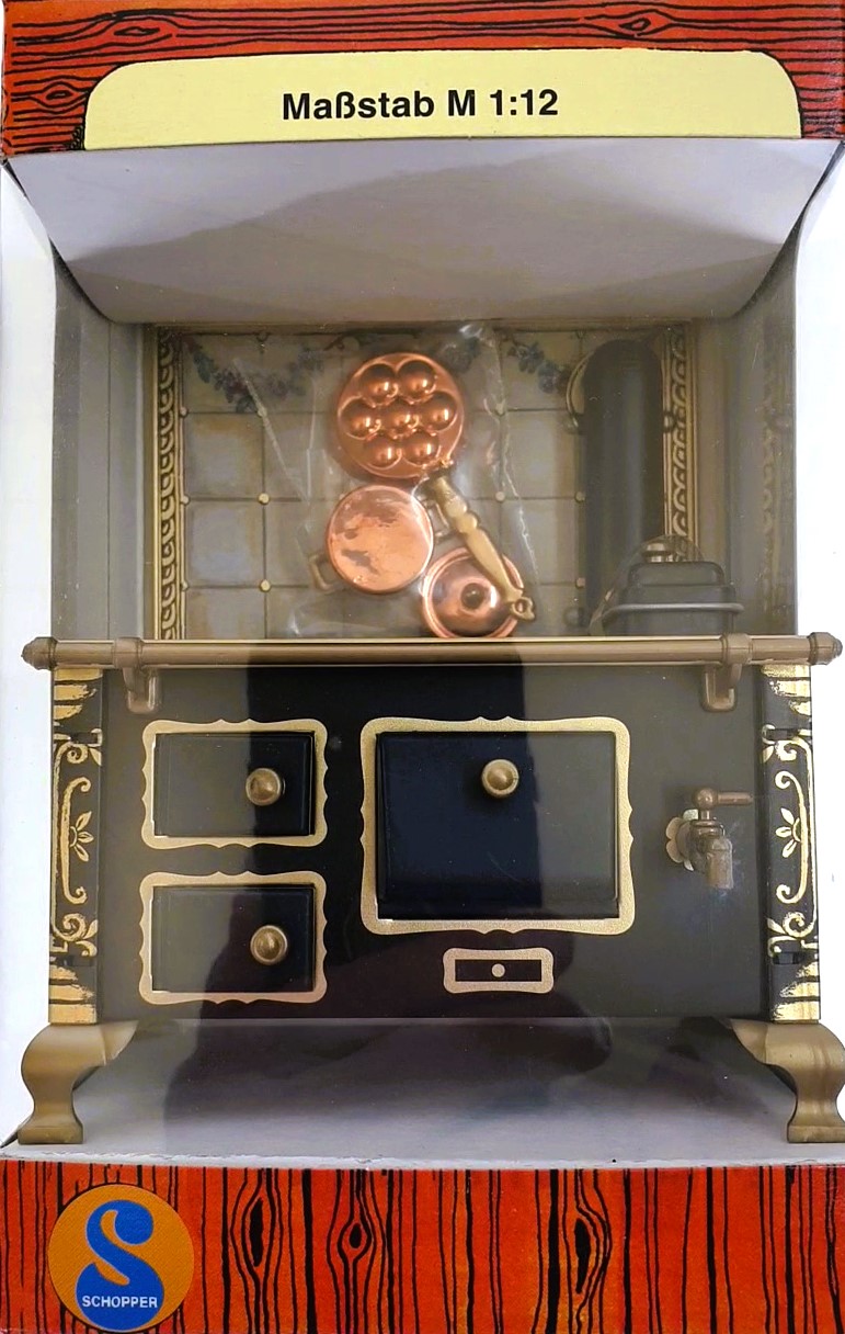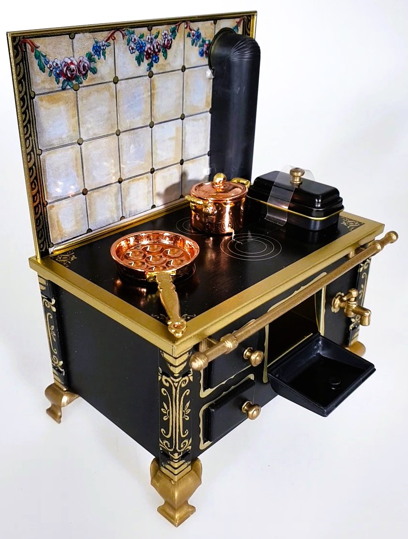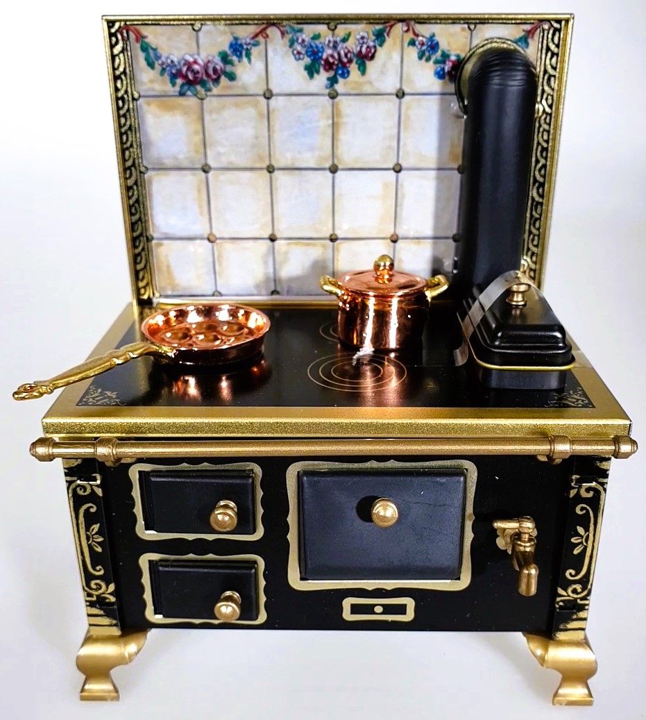 Weiterführende Links zu "Herd 1:12, schwarz Rückwand Rosengirlande mit Zubehör, Made in Germany"
