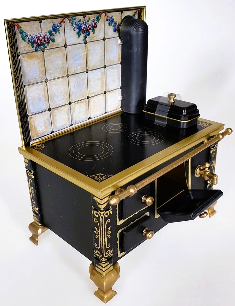 Wunderschöner Puppenherd schwarz mit Rückwand