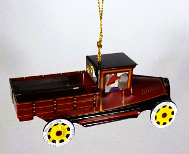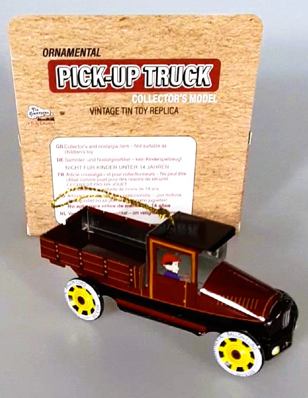 Very nice lithographed Pennytoy a truck bed from the 20s. Well made, with Gold Ribbon to hang, in single packaging.