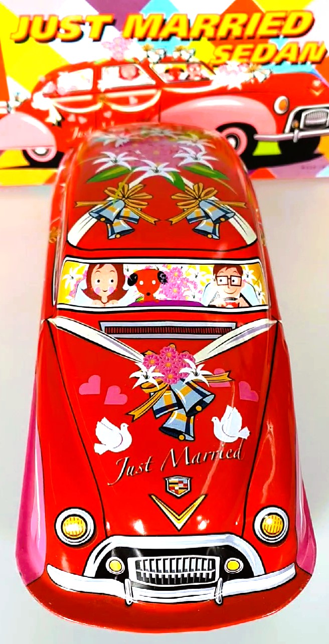 Beautifully lithographed American "Just Married" limousine with a wind-up key.